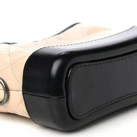 CC Aged Calfskin Quilted Small Gabrielle Hobo Beige Black