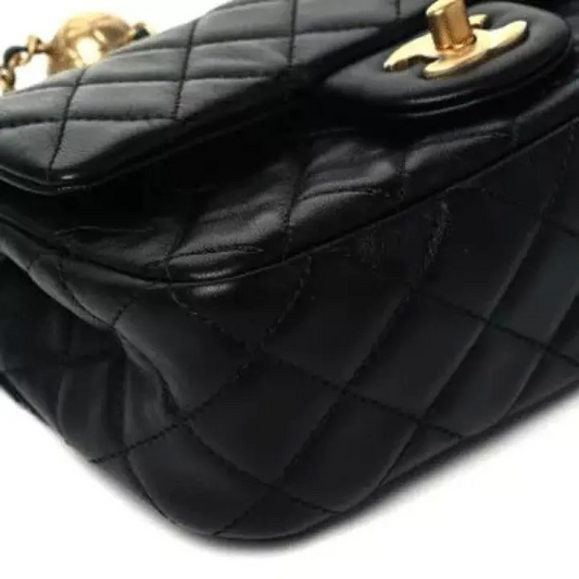 CC Lambskin Quilted CC Pearl Crush Mini Rectangular Flap Black