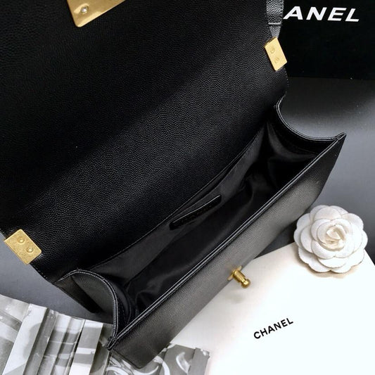 CC 25.5cm Boy Handbag Black Grained Calfskin Gold Tone Metal Caviar leather