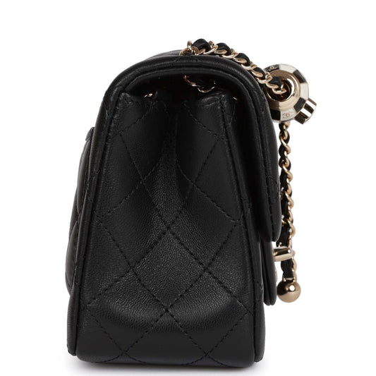 CC Pearl Crush Mini Square Flap Bag Black Lambskin Light Gold Hardware
