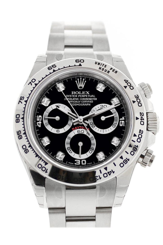 RLX Cosmograph Daytona Black Diamond Dial White Gold Oyster Men's Watch 116509