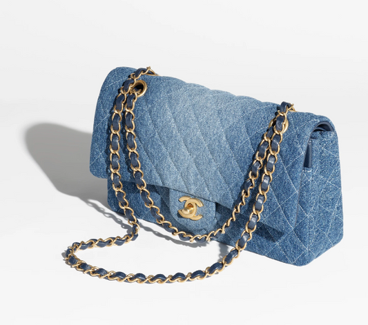 CC CLASSIC 11.12 HANDBAG Washed Denim & Gold-Tone Metal Blue size: 15.5 × 25.5 × 6.5 cm