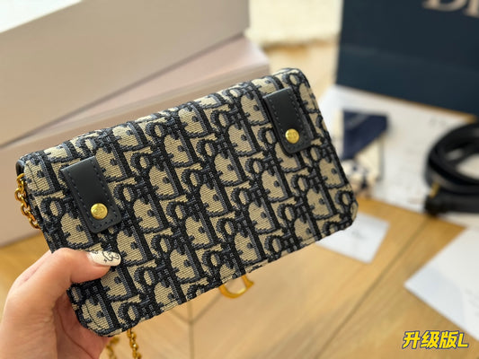 CHRISTIAN D Oblique Saddle Chain Long Wallet Blue