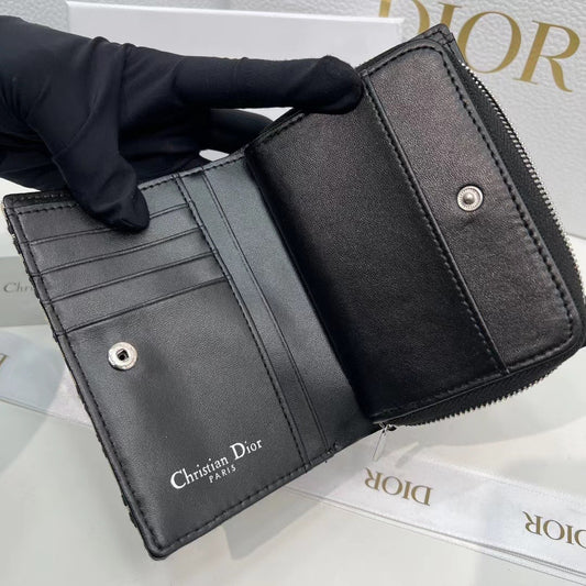 D CARO VOYAGEUR WALLET Black Supple Cannage Calfskin