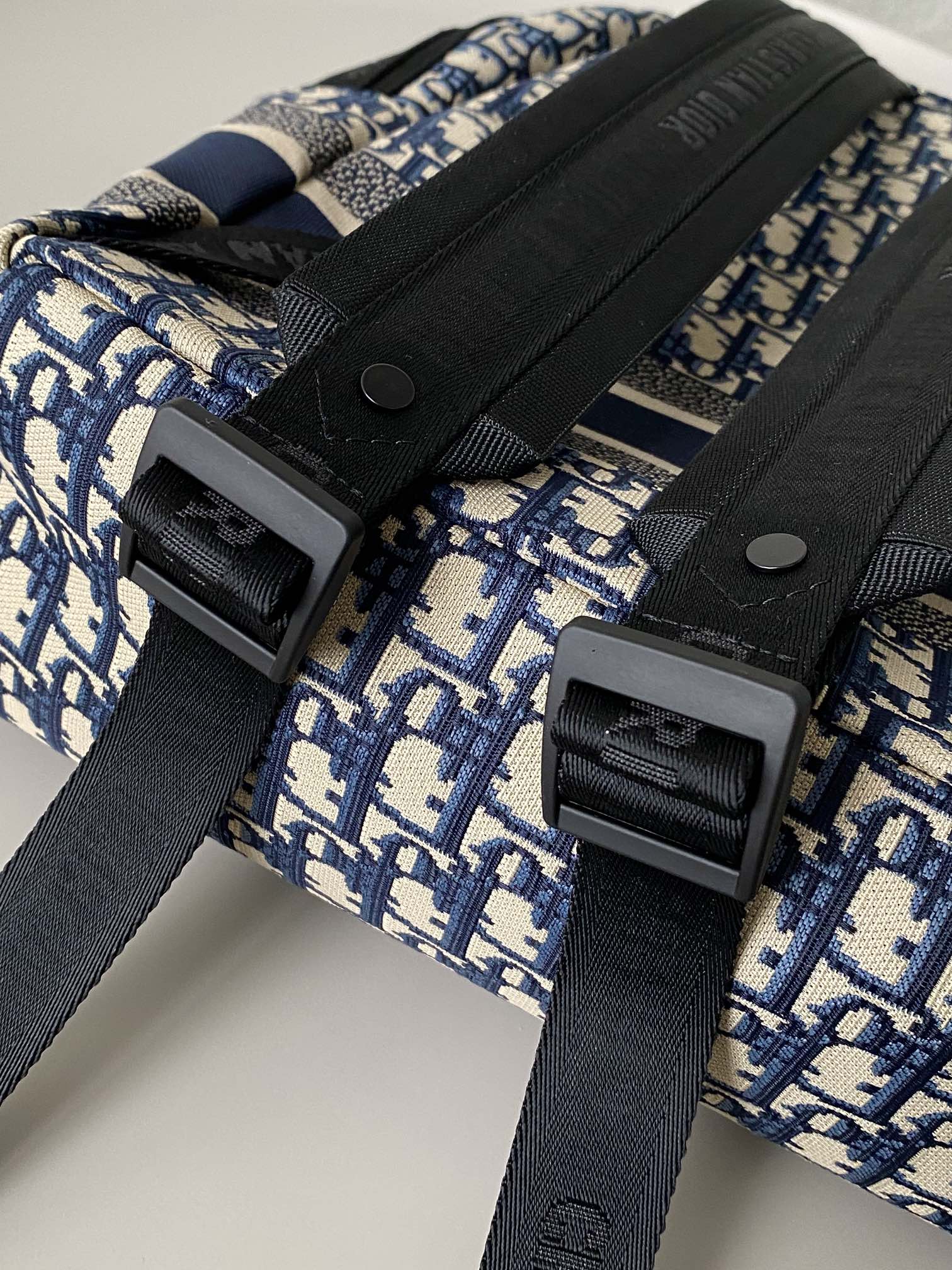 CHRISTIAN DIOR Blue Oblique Canvas Diortravel Backpack Bag 35x41x15cm