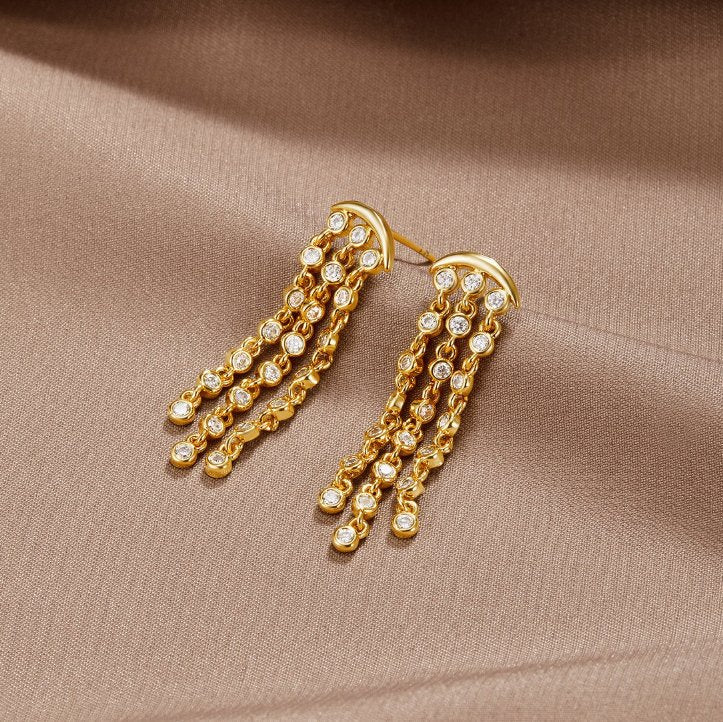 Add a touch of glamour to your look with these Moondrop Crystal Waterfall Earrings. These earrings feature stunning waterfall crystals that catch the light beautifully.