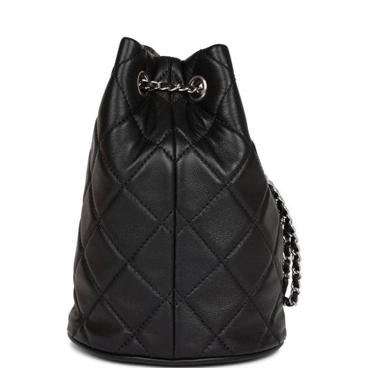 CC Mini Bucket Bag Black Lambskin Silver Hardware