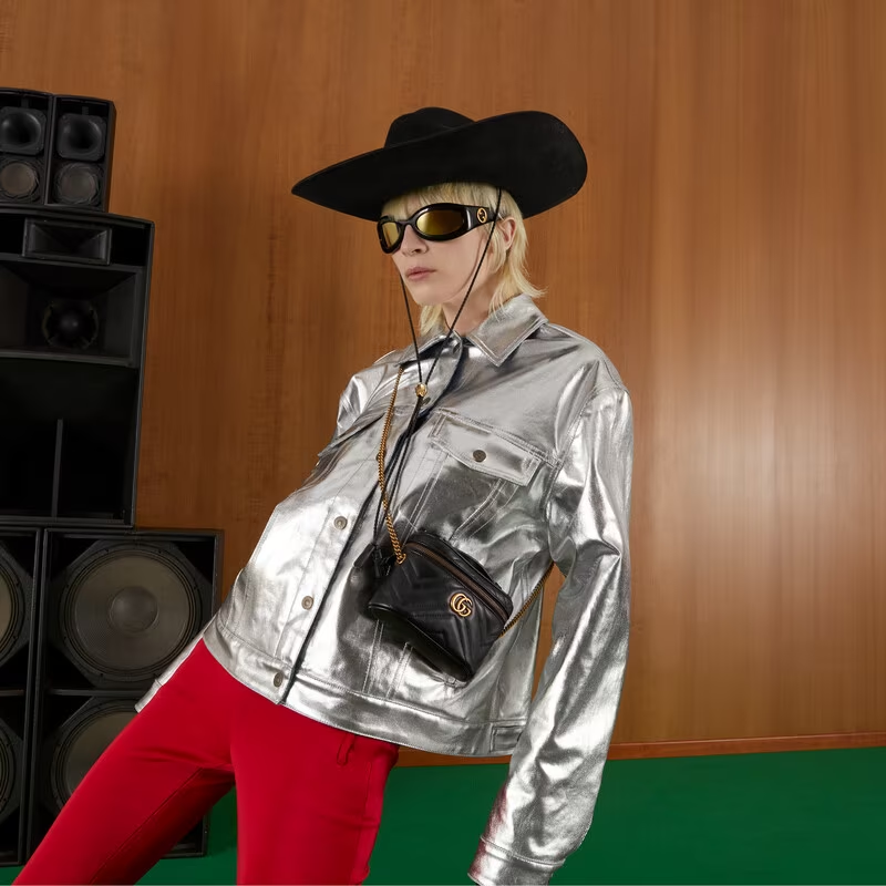A zip around mini bag with a top handle is presented within the GG Marmont collection. Crafted from the line's signature matelassé chevron leather in black. the rounded shape is enriched with the Double G detail. Featuring a detachable chain strap. the accessory can be styled in different ways.