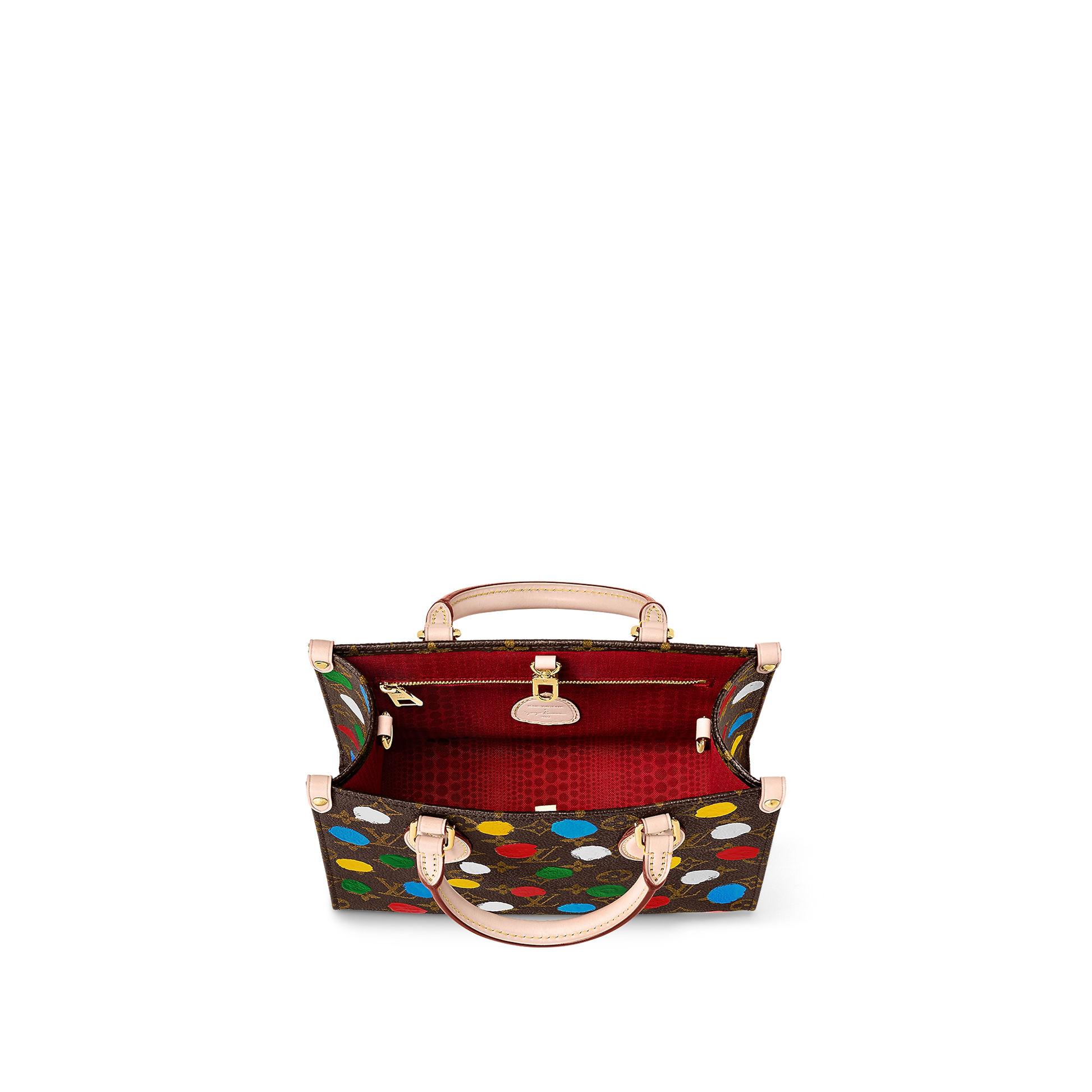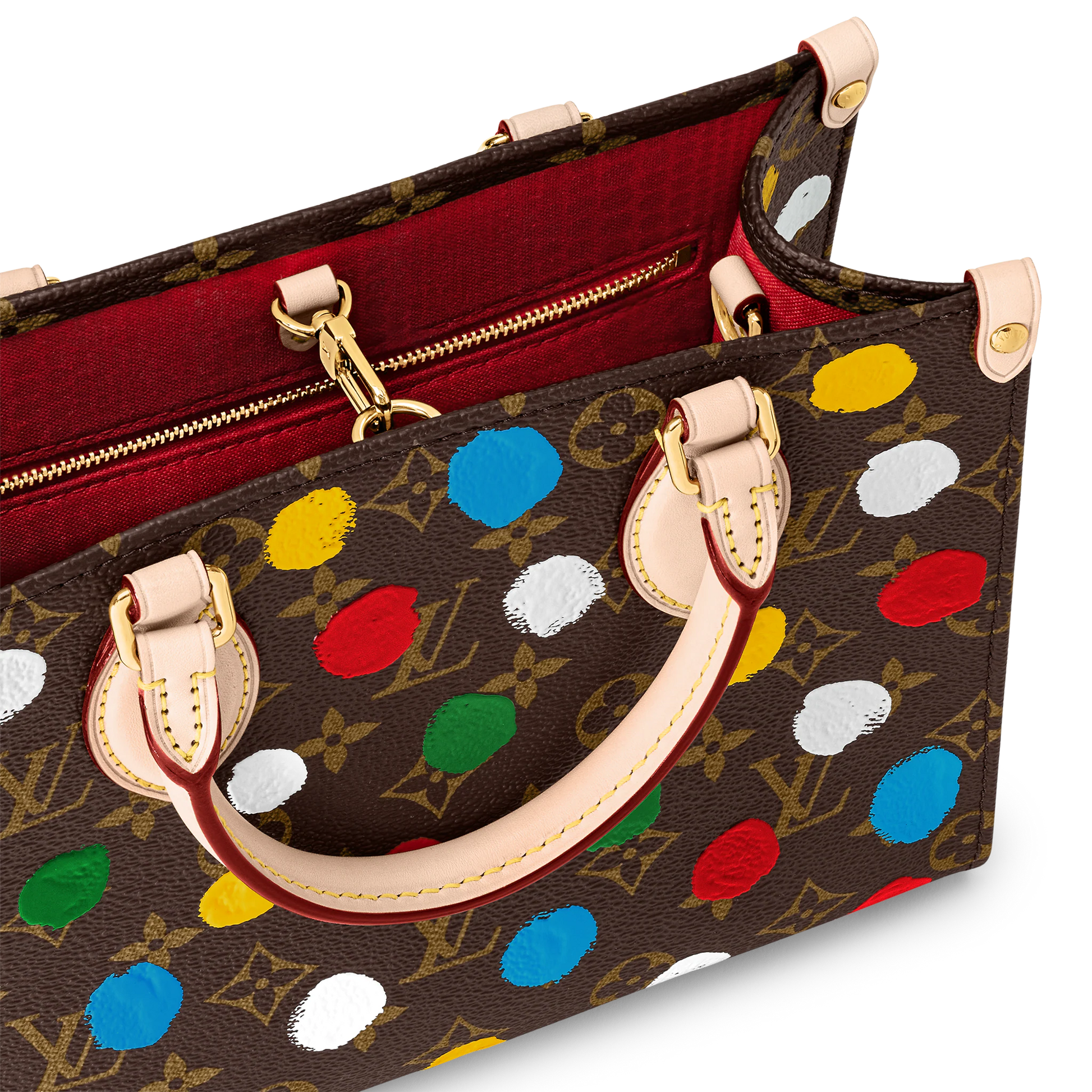The LVxYK OnTheGo PM is part of the second exclusive L x Yayoi Kusama collection. renewing the House’s close friendship with the revered Japanese artist. A sophisticated multi-step printing process on Monogram canvas reproduces Kusama’s colorful dots. a unifying theme in her work. with a strikingly realistic hand-painted effect. And it’s a marvelously practical bag. with a handy removable coin purse.