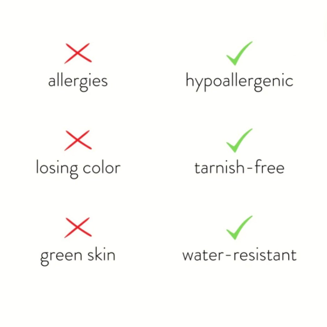 Made with waterproof stainless steel, you will never have to worry about fading or tarnishing jewelry ever again.