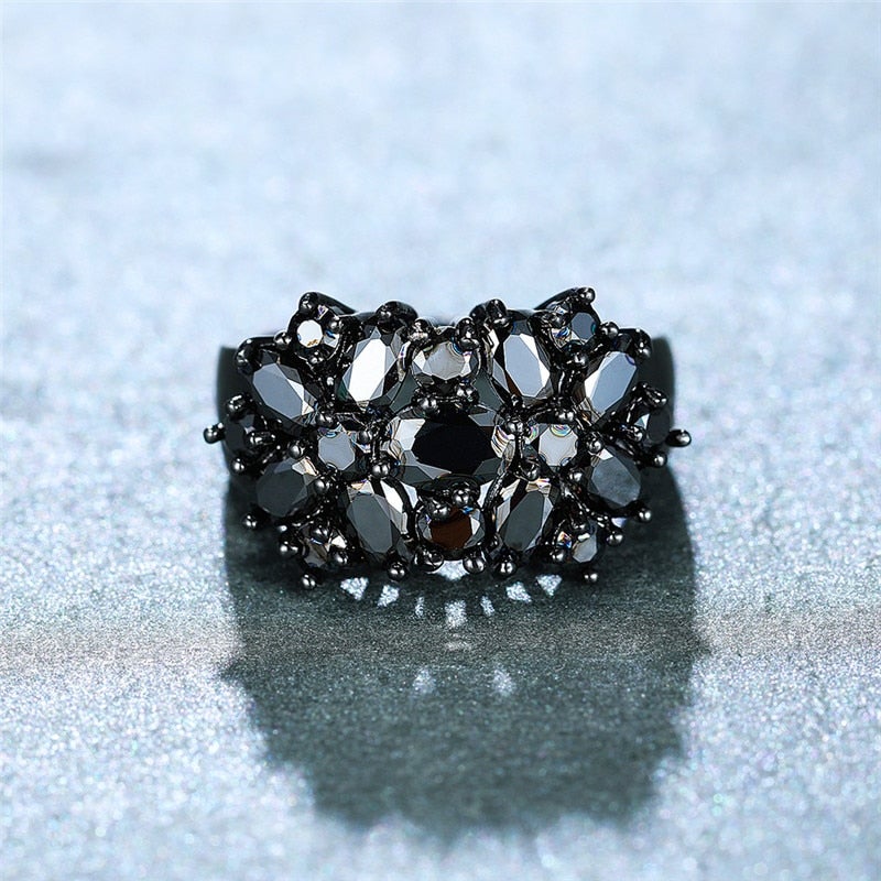 Black Crystal Oval Ring