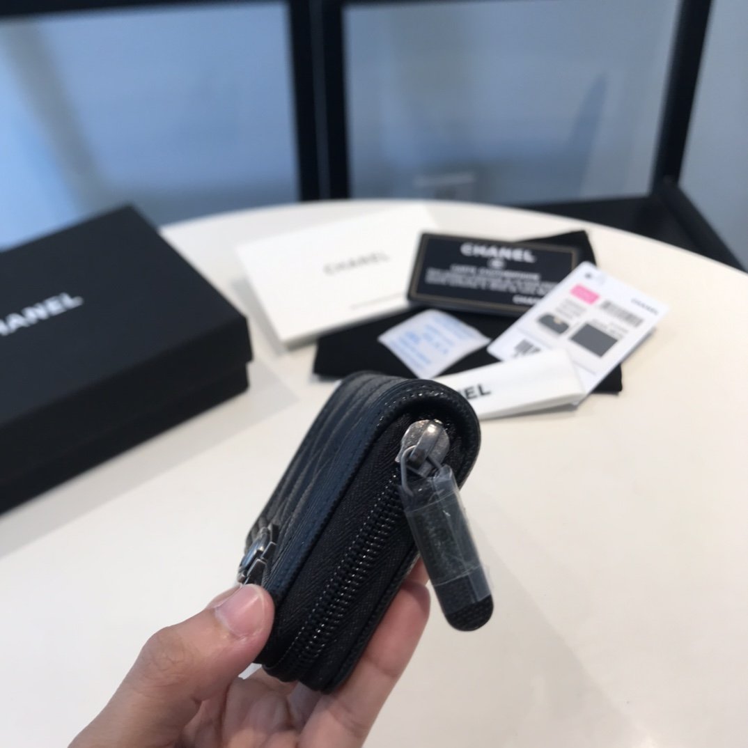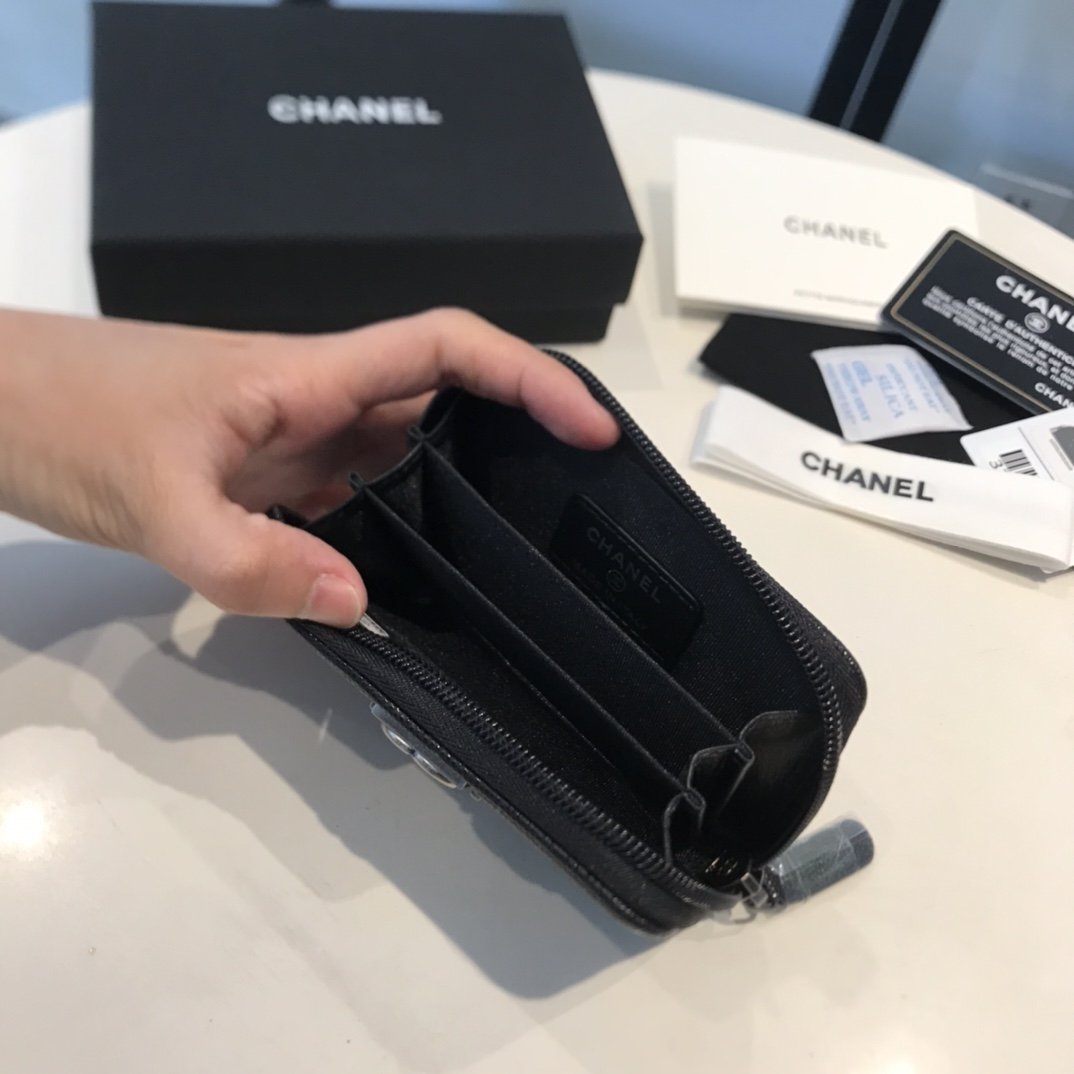 cc CO-CO Boy Flap Card Holder 11.5cm/4.5in Silver Hardware For Women Black