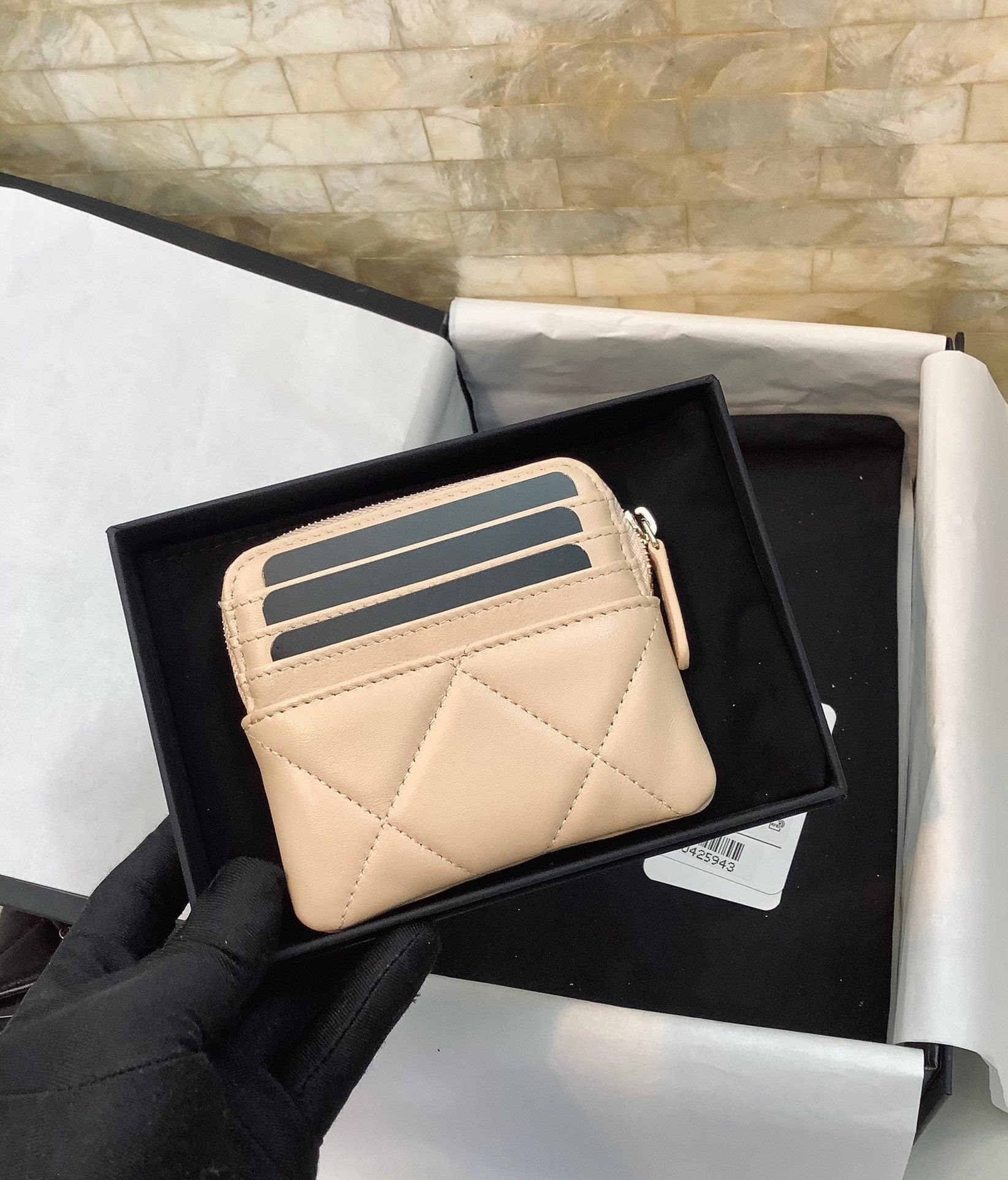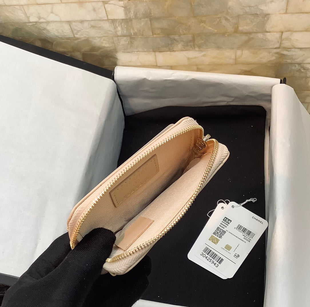 cc CO-CO Card Holder 12cm/4.7in Gold Hardware For Women Beige