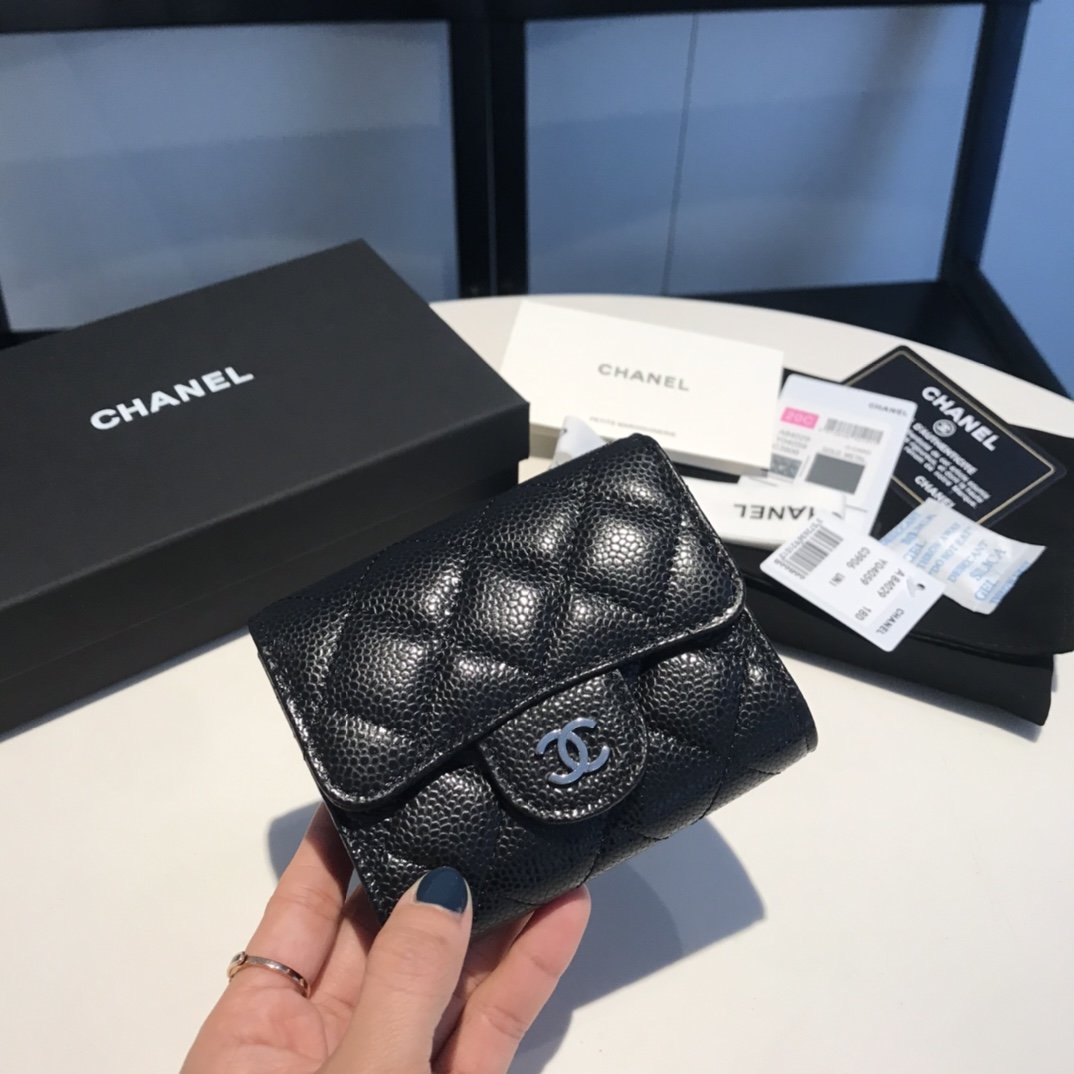 cc CO-CO Classic Card Holder10.5cm/4.1in Silver Hardware For Women Black