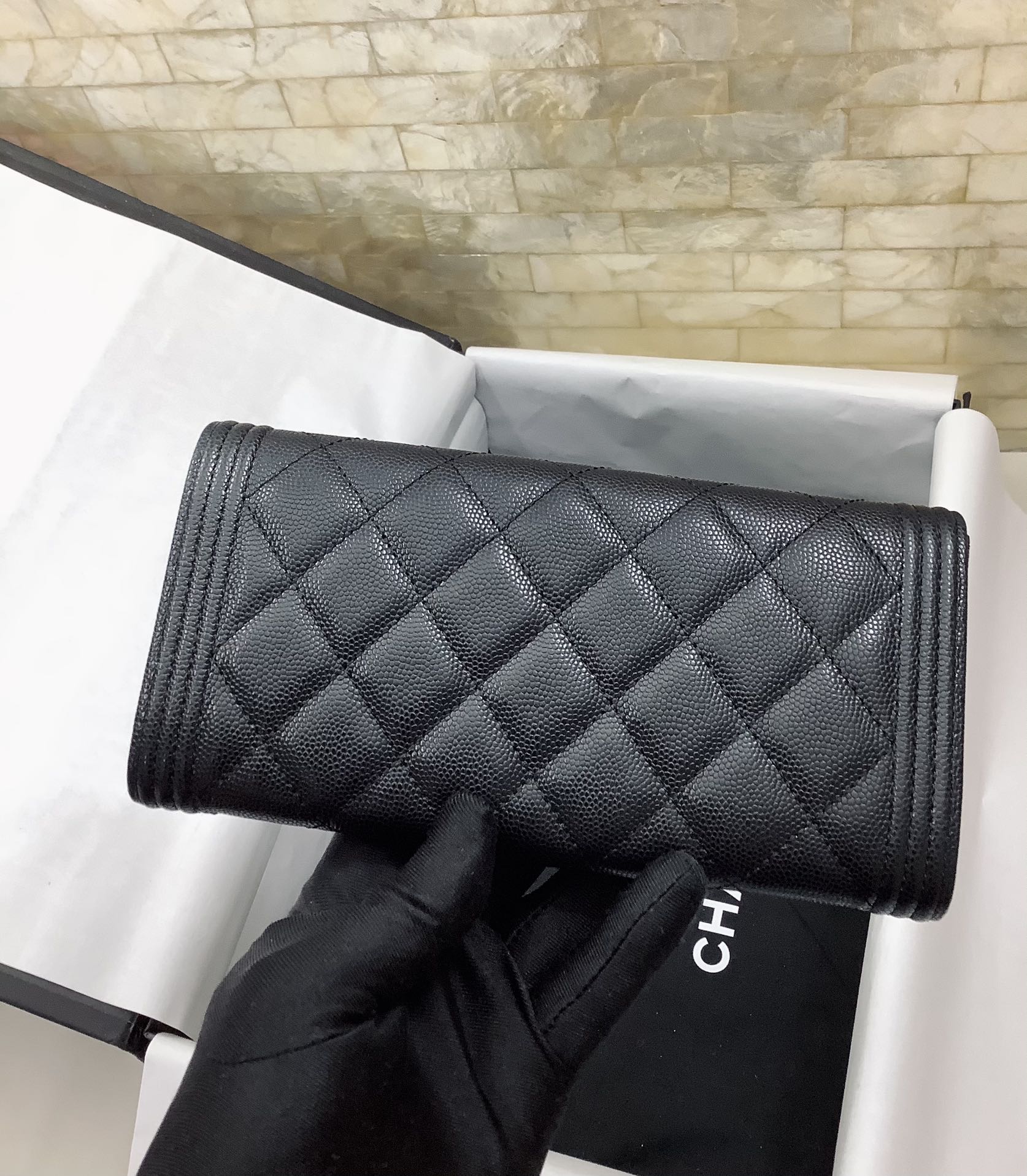 cc CO-CO Long Flap Wallet 19.5cm/7.7in Gold Hardware For Women Black