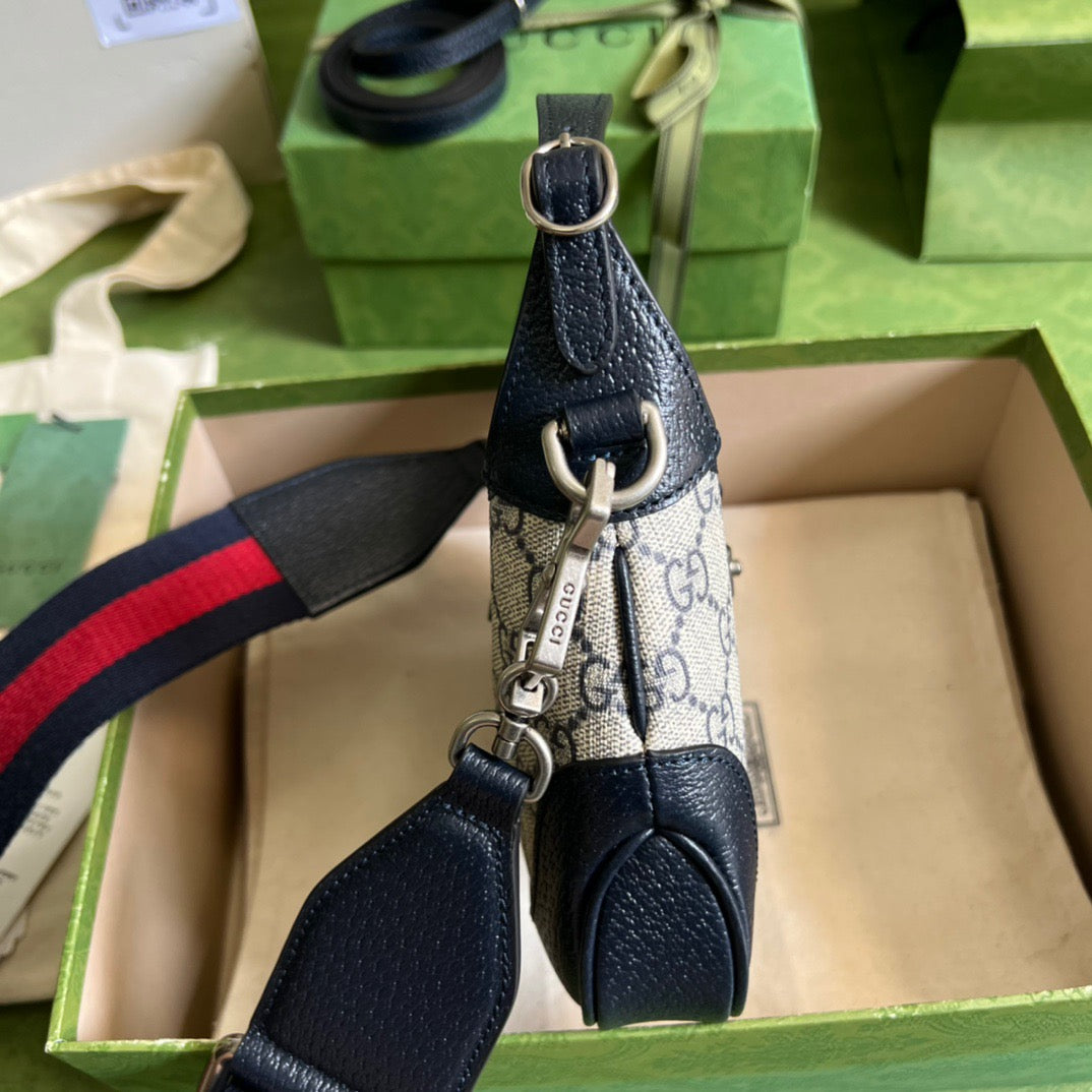 Mirroring the material's historic origins. GG Supreme is introduced in a timeless mix of blue and beige for Gc Love Parade. The canvas has come to the front of each collection decade after decade to become a hallmark of the House. Here. the classic palette defines this small-sized Jackie 1961 shoulder bag.