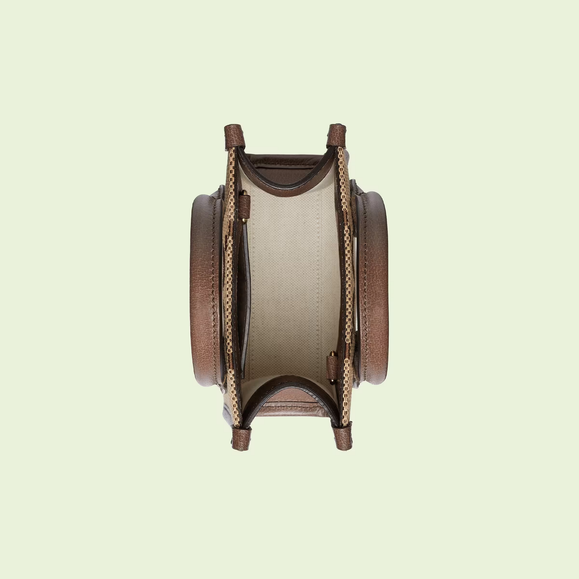 First seen as part of GG Aria. the jumbo version of the emblematic GG motif returns atop signature luggage pieces. imbuing each design with a pronounced logo feel. This mini tote bag is accentuated by the signature green and red House Web. a contemporary take on a GG archival belt buckle from the '70s.