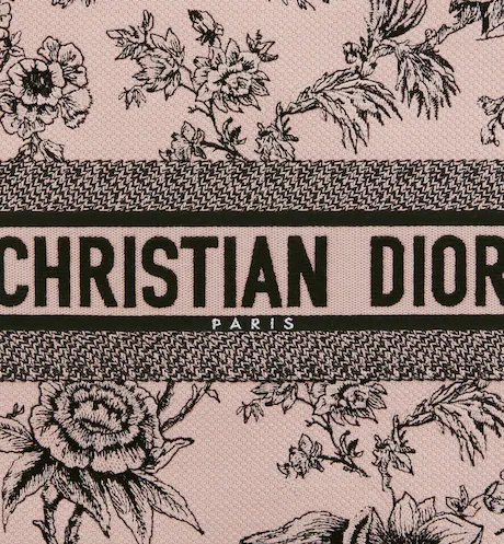 The D Book Tote is an original creation introduced by Maria Grazia Chiuri. D's Creative Director. and has become a staple of the D aesthetic. Designed to hold all the daily essentials. it is fully embroidered with the powder pink D Jardin Botanique motif and presents a romantic floral pattern inspired by Mr. D's beloved Granville gardens. Adorned with the 'CHRISTIAN D PARIS' signature on the front. the large tote exemplifies the House's signature savoir-faire and may be carried by hand or worn over the shoulder.