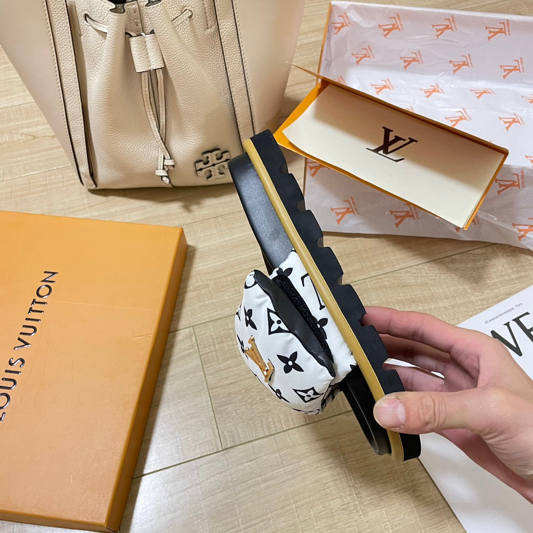 Letter Buckle Velcro Slippers