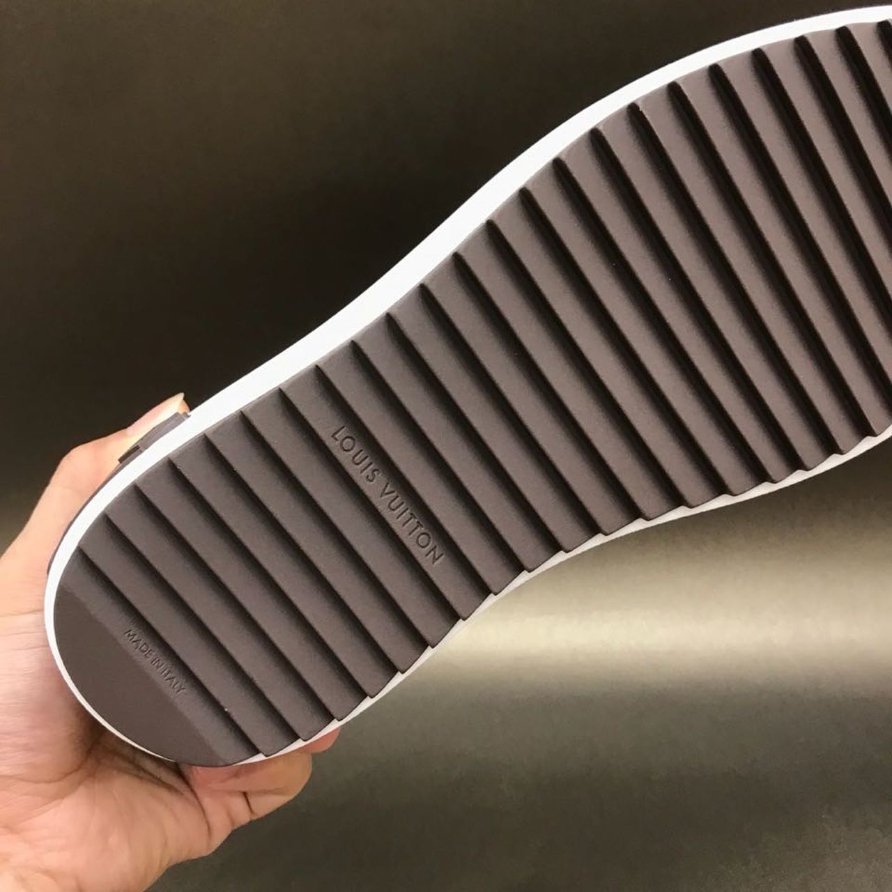 The iconic Time Out sneaker is revisited this season with metallic Monogram pattern. This model is notable for its refined details. including thick laces with shimmering lurex inserts. Louis and Vuitton lace accessories. and Monogram-canvas trim at the back. An elevated. treaded rubber outsole completes this fashionable. feminine design.