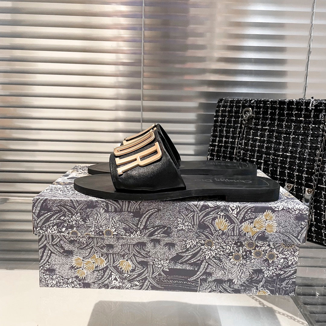 Metal Letters Solid Color Flat Slippers