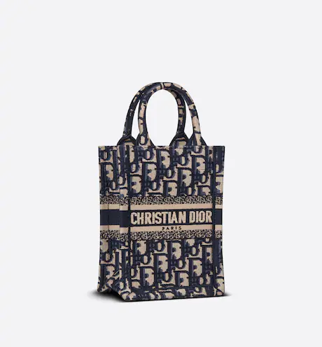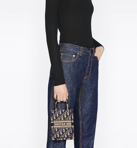 This season. Maria Grazia Chiuri's phone bag is enriching the iconic D Book Tote line. A perfect example of the House's savoir-faire. the style is entirely embroidered with the blue D Oblique motif. and is enhanced by the 'CHRISTIAN D PARIS' signature on the front. The miniature bag will accommodate a phone as well as small daily essentials. Completed by an adjustable and removable embroidered shoulder strap. the modern accessory can be worn in the hand. on the shoulder or crossbody.