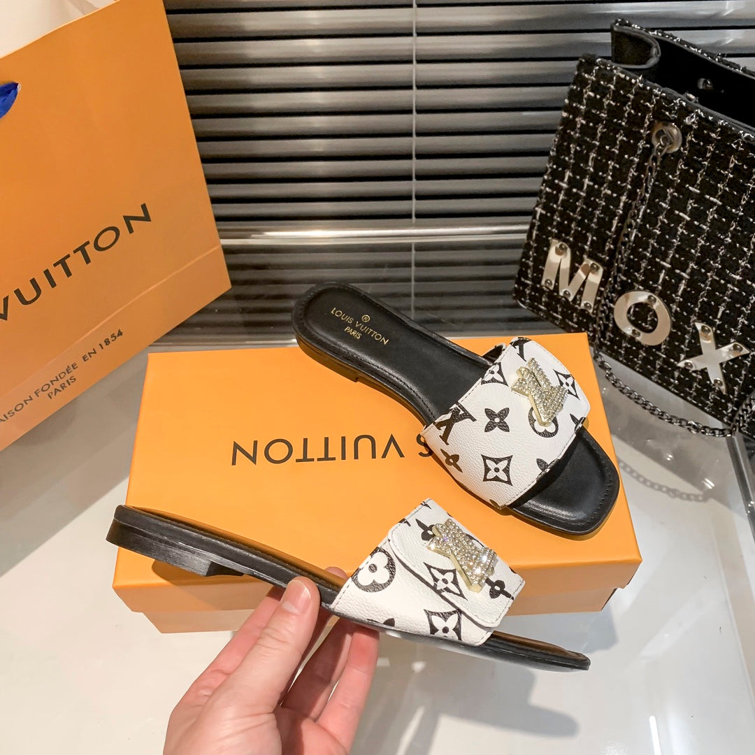 New Embossed Diamond Velcro Flat Slippers