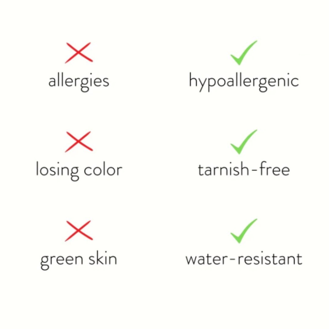 - Waterproof & tarnish-free