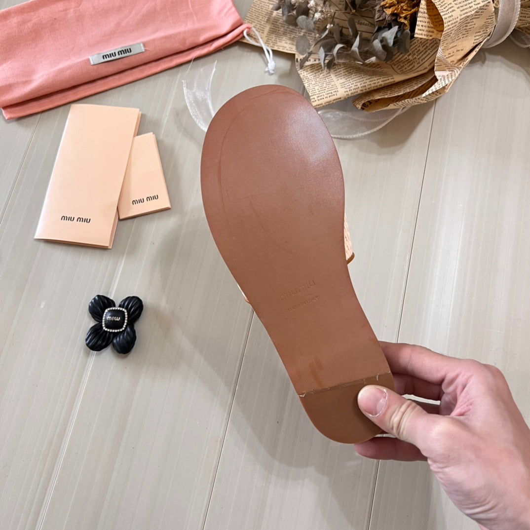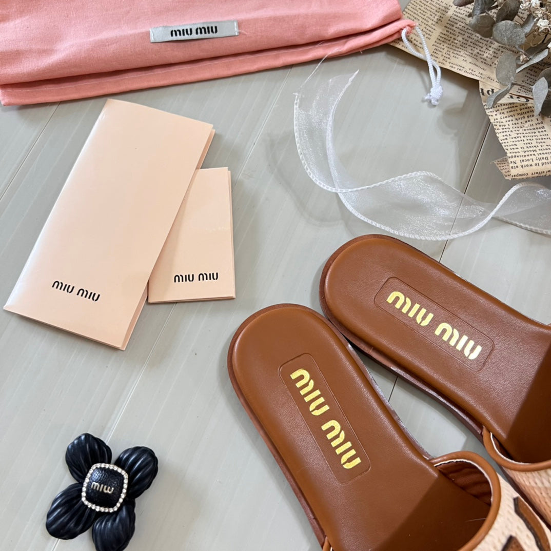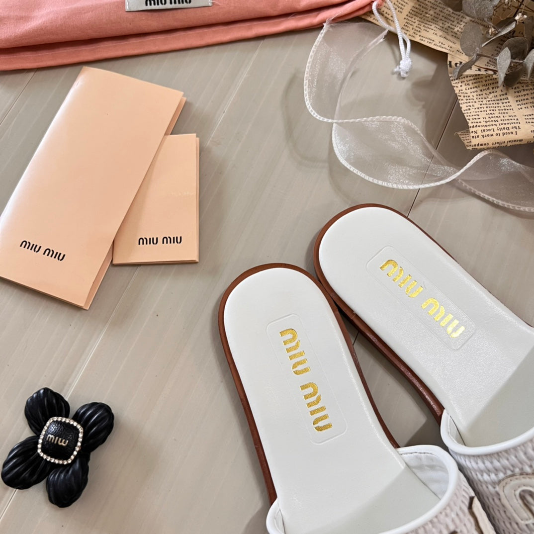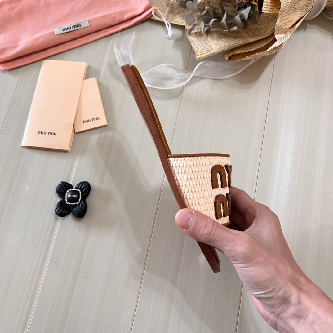 - This raffia-textured fabric flat shoe reflects the brand's iconic style and is full of summer style. The raised letter logo adds a unique classic style.