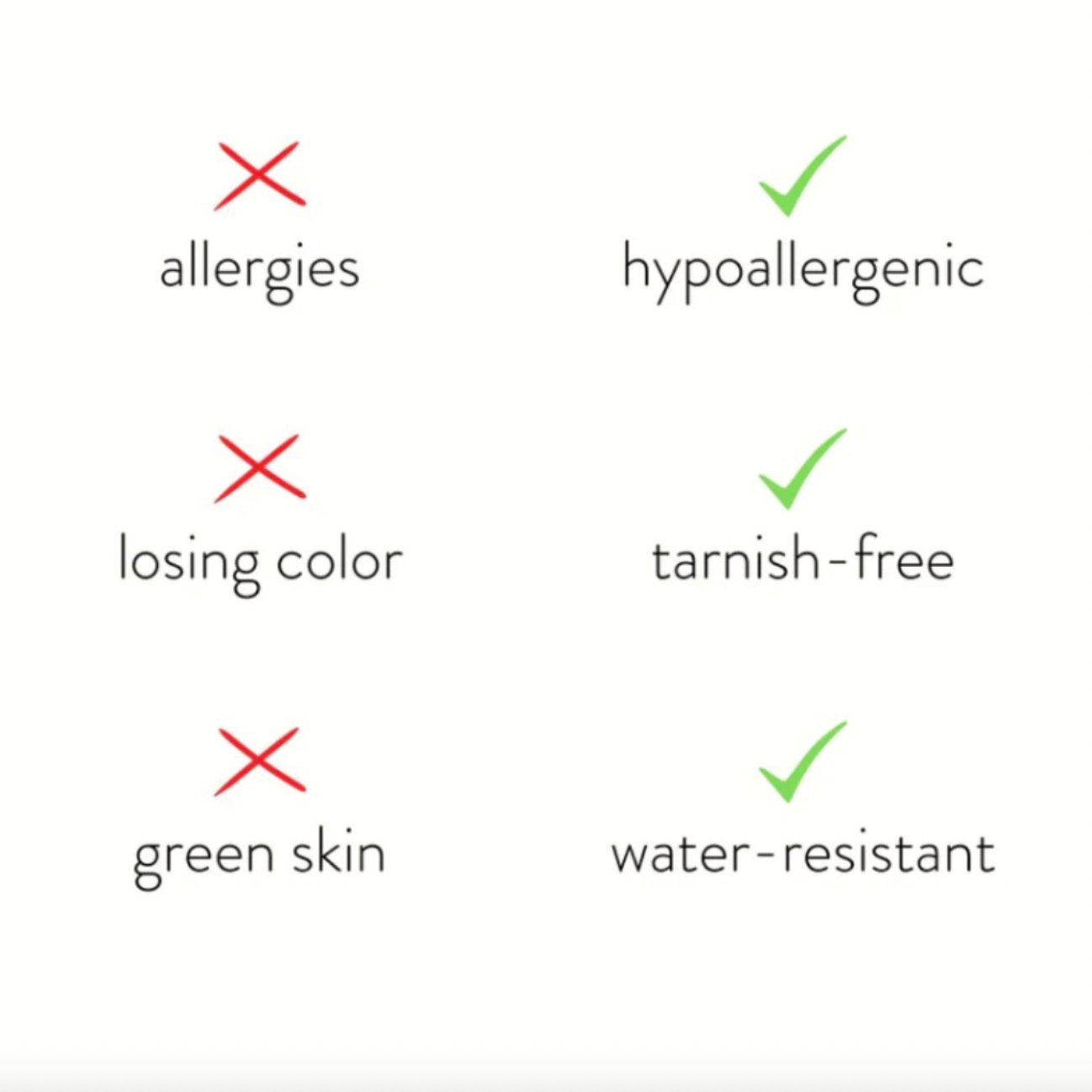 Made with waterproof stainless steel, you never need to worry about fading or tarnishing jewelry ever again.